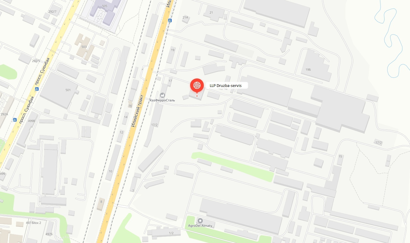 +77056048176 info@druzba-service.com Office Medeu district, Tulebaeva Street 38/61 Manufacture Iliyskiy Trakt St 17, Almaty 050049, Kazakhstan 43.370271, 76.994800